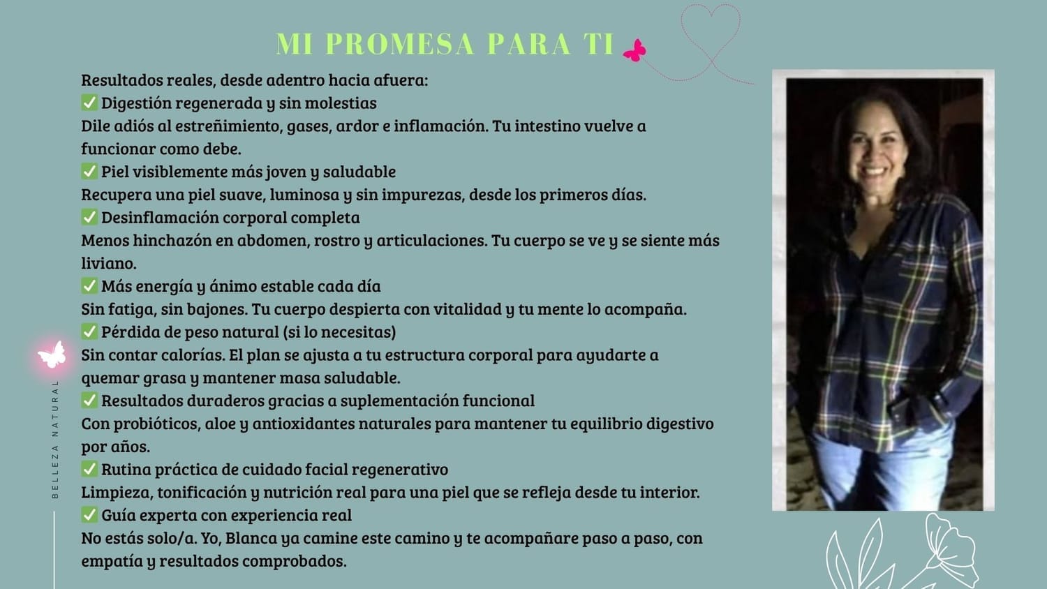 Te ayudo a tener una versión de ti más saludable y radiante; estoy contigo para lograrlo.